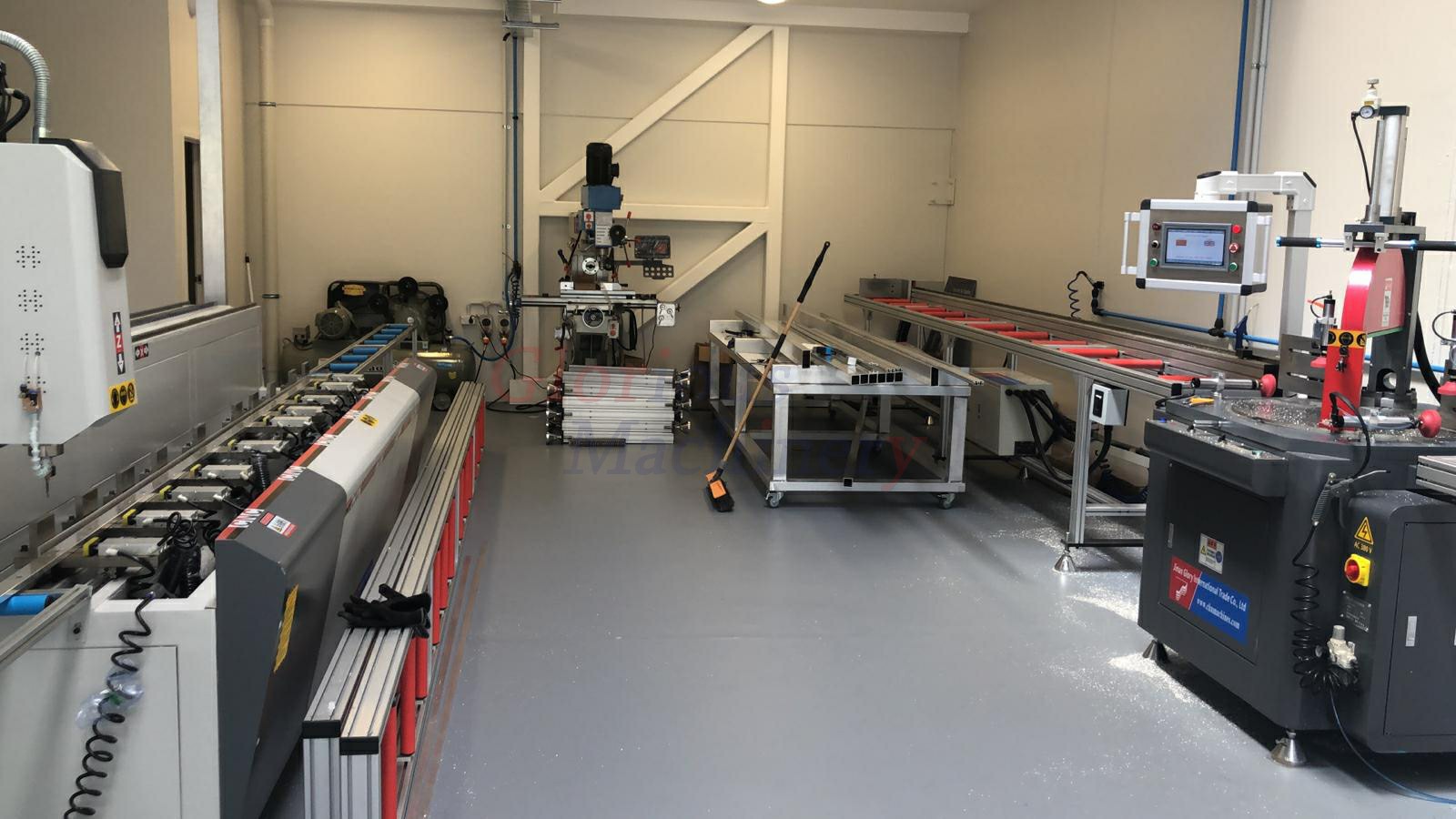 主要產品有:PVC/鋁窗門加工機器、幕墻制造機器、隔熱復合鋁型材加工機器、中空玻璃制造機器等。